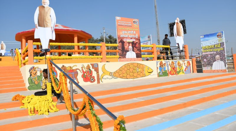 महाकुंभ नगर। विश्व के सबसे बड़े आध्यात्मिक जनसमागम के सकुशल आयोजन के लिए शुक्रवार को त्रिवेणी पूजन के दौरान प्रधानमंत्री नरेन्द्र मोदी कुंभाभिषेकम भी करेंगे। वह पवित्र त्रिवेणी के तट पर कुंभ कलश की स्थापना करेंगे। यह कुंभ कलश तैयार करा लिया गया है। प्रयागराज मेला प्राधिकरण ने मोतियों से जड़ित कुंभ कलश बनवाया है। प्रधानमंत्री नरेन्द्र मोदी लगभग 5500 करोड़ रुपये की 167 परियोजनाओं का लोकार्पण करेंगे।वह 11 कारिडोर तथा 29 मंदिरों के जीर्णोंद्धार के साथ पुल, ओवरब्रिज, सड़क परियोजनाओं का लोकार्पण करेंगे। इसके अलावा रेलवे, एयरपोर्ट व एनएचएआइ की परियोजनाओं का वह उद्घाटन करेंगे। इन परियोजनाओं से महाकुंभ के आयोजन की दिव्यता व भव्यता बढ़ेगी तो प्रयागराज के विकास को भी गति मिलेगी। वह कुंभ सहायक एआइ चैटबाट भी लांच करेंगे।