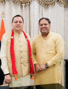 रूद्रपुर। महापौर विकास शर्मा ने देहरादून में मुख्यमंत्री पुष्कर सिंह धामी से शिष्टाचार भेंट की। इस दौरान महापौर ने रूद्रपुर महानगर की विकास योजनाओं और नागरिक समस्याओं पर विस्तार से चर्चा की। मुख्यमंत्री ने करोड़ों की विकास योजनाओं को हरी झंडी देते हुए शीघ्र धरातल पर उतारने का आश्वासन दिया।