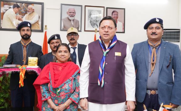 देहरादून। भारत स्काउट एंड गाइड उत्तराखंड के द्वारा संगठन के 75 वें स्थापना दिवस के उपलक्ष्य में मुख्यमंत्री पुष्कर सिंह धामी को फ्लैग स्टिकर लगाकर अलंकृत किया गया।