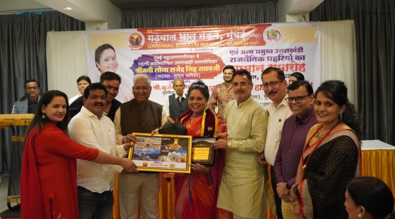 उत्तराखंड की सामाजिक , सांस्कृतिक एवं शैक्षणिक जनसरोकारों के लिए प्रतिबद्ध , मुंबई में उत्तराखंडियों की 98 वर्ष पुरानी संस्था गढ़वाल भ्रातृ मंडल द्वारा मुंबई के अंधेरी रिक्रिएशन क्लब में एक भव्य सम्मान समारोह का आयोजन किया गया। कार्यक्रम में मुंबई महानगरपालिका में उद्धव शिवसेना के टिकट पर जीती पहली नवनिर्वाचित उत्तराखंडी नगर सेविका श्रीमती लोना राजेंद्र सिंह रावत सहित मुंबई के राजनीतिक प्रहरियों को सम्मानित किया गया। इनमें उत्तराखंड की श्रीनगर विधानसभा क्षेत्र से दो बार चुनाव लड़ने वाले श्री मोहन काला , मुंबई के निकटवर्ती ठाणे जिला में कांग्रेस के टिकट पर निकाय चुनाव लड़ने वाले श्री अमन बर्थवाल , भायंदर क्षेत्र से एन सी पी के टिकट पर निकाय चुनाव लड़ने वाली श्रीमती ललिता विनोद सिंह बिष्ट , मुंबई में 50 वर्ष से पहले कांग्रेस की राजनीति और अब भारतीय जनता पार्टी के सदस्य श्री विनोद नेगी तथा उत्तर मुंबई भारतीय जनता पार्टी युवा मोर्चा के नवनियुक्त जिला अध्यक्ष एडवोकेट आशुतोष रतूड़ी को भी विशेष रूप से सम्मानित किया गया ।