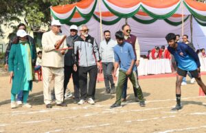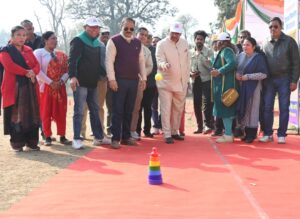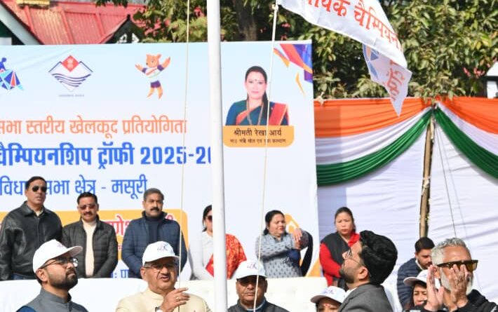 देहरादून, 02 जनवरी। कैबिनेट मंत्री गणेश जोशी ने आज गढ़ी कैंट स्थित गोरखा मिलिट्री इंटर कॉलेज में युवा कल्याण एवं प्रान्तीय रक्षक दल विभाग द्वारा शिक्षा एवं खेल विभाग के सहयोग से आयोजित विधानसभा स्तरीय विधायक चैंपियनशिप ट्रॉफी 2025-26 का चैंपियनशिप ट्रॉफी के फ्लैग के मध्यम से ध्वजारोहण कर विधिवत उद्घाटन किया। इस अवसर पर उन्होंने खिलाड़ियों से परिचय प्राप्त कर उनका उत्साहवर्धन किया। इस दौरान कैबिनेट मंत्री जोशी ने 800 मीटर की दौड़ में विजेता खिलाड़ियों को पुरस्कृत भी किया।