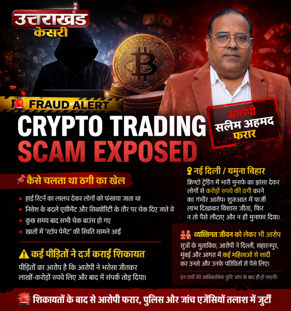 दिल्ली के यमुना विहार क्षेत्र से जुड़े सलिम अहमद नामक व्यक्ति पर क्रिप्टो ट्रेडिंग के नाम पर करोड़ों रुपये की ठगी करने के गंभीर आरोप सामने आए हैं।