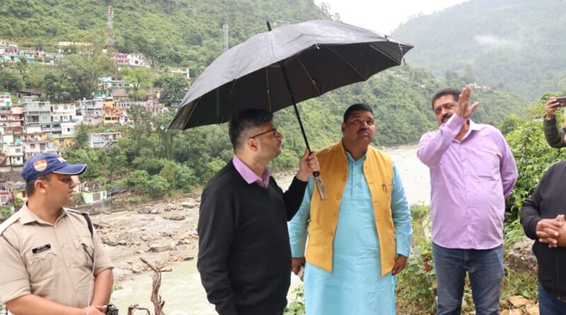 कर्णप्रयाग नगर क्षेत्र में भूस्खलन प्रभावित स्थानों का जिला अधिकारी ने किया निरीक्षण