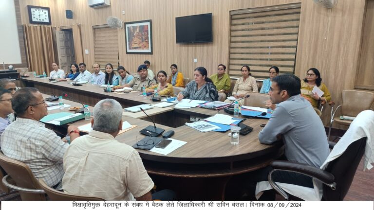 जिलाधिकारी सविन बंसल की अध्यक्षता में ऋषिपर्णा सभागार में भिक्षावृति मुक्त देहरादून के संबंध में बैठक आयोजित की गई। जिलाधिकारी ने संबंधित अधिकारियों को निर्देश दिए कि देहरादून शहर में कोई बच्चा भिक्षावृति करता न दिखे। इस दिशा में प्रभावी कदम उठाए जाएं।