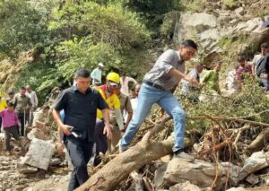 ढौंढ; ढंगार; गाढ; गदेरे पार कर आपदा प्रभावितों तक पंहुचे डीएम; ग्रामीण बोले आजादी के बाद कोई डीएम आए फुलेत