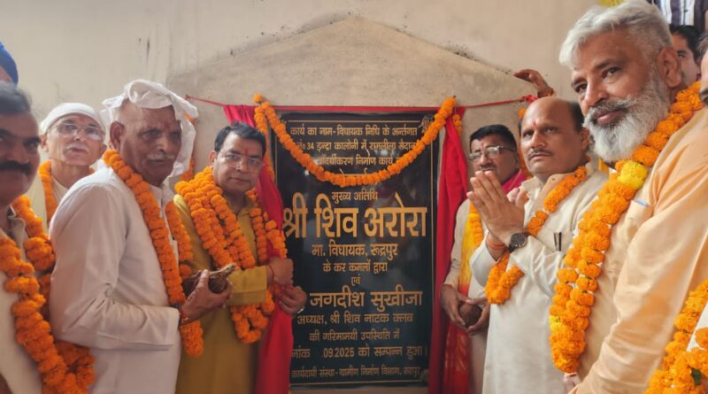 रुद्रपुर। विधायक शिव अरोरा ने रविवार को इंद्रा कॉलोनी रामलीला मैदान में विधायक निधि से स्वीकृत सौंदर्यकरण कार्यों का लोकार्पण किया। इस अवसर पर उन्होंने नारियल फोड़कर रामलीला मंच और आसपास कराए गए विकास कार्यों का उद्घाटन किया। कार्यक्रम से पूर्व रामलीला ध्वज स्थापना और भूमि पूजन विधिवत संपन्न हुआ, जिसमें शिव अरोरा भी शामिल रहे।