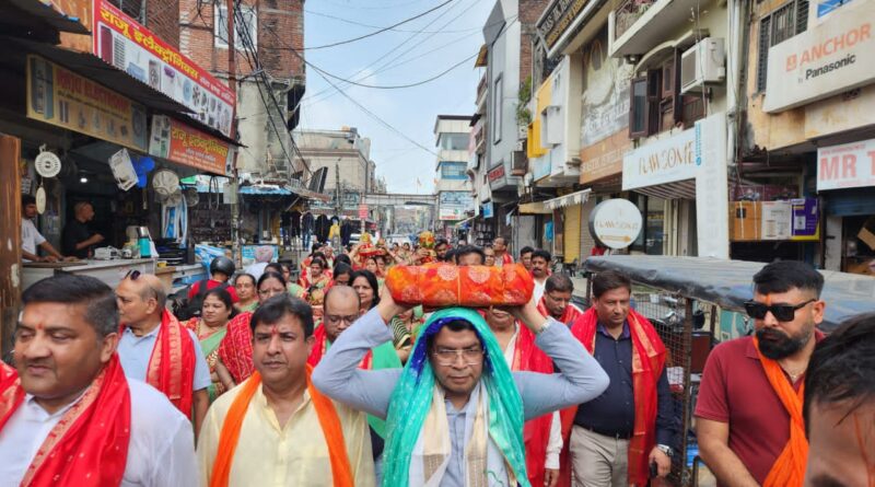 कलश यात्रा मे भगवत गीता को सिर पर धारण कर पैदल चले विधायक शिव अरोरा