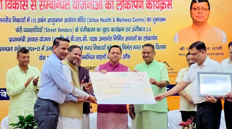नगर निगम रूद्रपुर को मिला ‘अटल निर्मल नगर पुरस्कार’, 35 लाख की धनराशि से किया गया सम्मानित