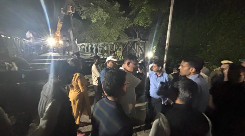 अतिवृष्टि के कारण देहरादून मसूरी रोड में पुल क्षतिग्रस्त होने से मसूरी क्षेत्र का आवगमन संपर्क कटने से जिलाधिकारी सविन बंसल ने तत्काल उक्त स्थल पर एसडीएम मसूरी एवं लोनिवि के सक्षम अधिकारियों को तैनात कर युद्धस्तर पर पुल निर्माण कराने के निर्देश दिए। डीएम के निर्देशों पर पुल निर्माण कार्य में उप जिलाधिकारी एवं अधीक्षण अभियंता ने रातदिन मौके पर तैनात रहते हुए उक्त स्थल पर वैली ब्रीज का निर्माण कार्य युद्ध स्तर पर जारी है। जिलाधिकारी कोठालगेट के समीप पुल निर्माण कार्यों की प्रगति को लेकर डीएम नियमित मॉनिटरिंग कर रहे है। वही देर सायं आज जिलाधिकारी सविन बंसल एवं मुख्य विकास अधिकारी अभिनव शाह ने कोठालगेट के समीप निर्माण स्थल पर पहुंच कर कार्य प्रगति का जायजा लेते हुए मौके पर उपस्थित अधिकारियों को आवगमन हेतु शीघ्र पुल सुचारू करने के निर्देश दिए। संबंधित अधिकारियों द्वारा जिलाधिकारी को आश्वस्त किया गया कि आज देर रात्रि तक बैली ब्रिज को छोटे वाहनों के आवगमन हेतु सुचारू कर दिया जाएगा।