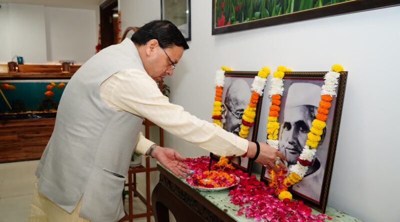 मुख्यमंत्री श्री पुष्कर सिंह धामी ने गांधी जयंती के अवसर पर मुख्यमंत्री आवास में राष्ट्रपिता महात्मा गांधी का स्मरण कर उन्हें श्रद्धा सुमन अर्पित किए