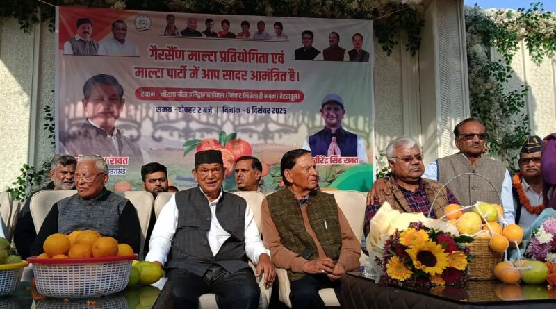 पूर्व मुख्यमंत्री हरीश रावत द्वारा राजधानी देहरादून में ‘गैरसैंण माल्टा पार्टी’ एवं माल्टा प्रतियोगिता का आयोजन किया गया। हरिद्वार बाईपास रोड स्थित नीरजा ग्रीन्स में आयोजित इस कार्यक्रम में प्रदेश कांग्रेस अध्यक्ष गणेश गोदियाल, कांग्रेस चुनाव प्रबंधन समिति के अध्यक्ष डा. हरक सिंह रावत, पूर्व विधानसभा अध्यक्ष गोविन्द सिंह कुंजवाल सहित बड़ी संख्या में सामाजिक, सांस्कृतिक, राजनीतिक एवं ट्रेड यूनियन से जुड़े लोगों ने सहभागिता की।