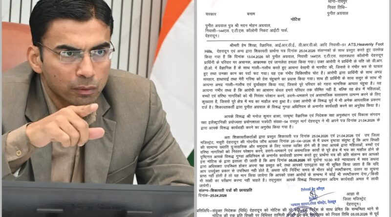 देहरादून के सहस्त्रधारा रोड स्थित एटीएस कॉलोनी में एक विवादित बिल्डर की कथित गुंडागर्दी पर जिला मजिस्ट्रेट न्यायालय ने स्वतः संज्ञान लेते हुए उसे गुंडा एक्ट में नोटिस जारी किया है। आरोपी बिल्डर पुनीत अग्रवाल को 7 दिन के भीतर जवाब प्रस्तुत करने के निर्देश दिए गए हैं, अन्यथा उसके खिलाफ जिला बदर की कार्रवाई शुरू कर दी जाएगी।