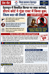 देहरादून में विवादित बिल्डर पर सख्त कार्रवाई, डीएम कोर्ट ने गुंडा एक्ट में किया बुक; जिला बदर की तैयारी