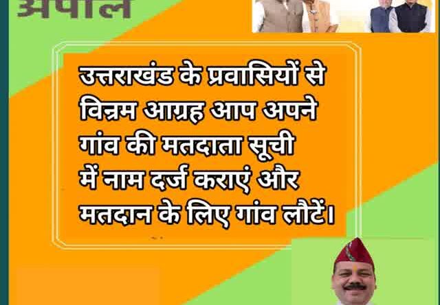भाजपा लघु उद्योग प्रकोष्ठ के प्रदेश सह संयोजक एवं बलूनी फाउंडेशन के अध्यक्ष मधुसूदन बलूनी इन दिनों ‘अपना वोट, अपने गांव’ अभियान को लेकर सक्रिय हैं। उन्होंने देश के विभिन्न शहरों में रह रहे उत्तराखंड के प्रवासियों से आग्रह किया है कि वे अपने गांव की मतदाता सूची में नाम दर्ज कराएं और मतदान के लिए गांव लौटें।