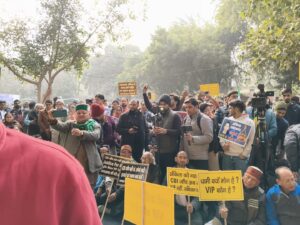 समापन सत्र में हाथों में तख्तियां लिए प्रदर्शनकारियों ने जंतर–मंतर परिसर में जुलूस निकाला। तख्तियों पर सरकार की आलोचना और CBI जांच की मांग के नारे लिखे थे। नारेबाज़ी के बीच न्याय की अपील और जवाबदेही की मांग गूंजती रही। कार्यक्रम का संचालन सामाजिक कार्यकर्ता सुरेंद्र हल्सी ने किया।